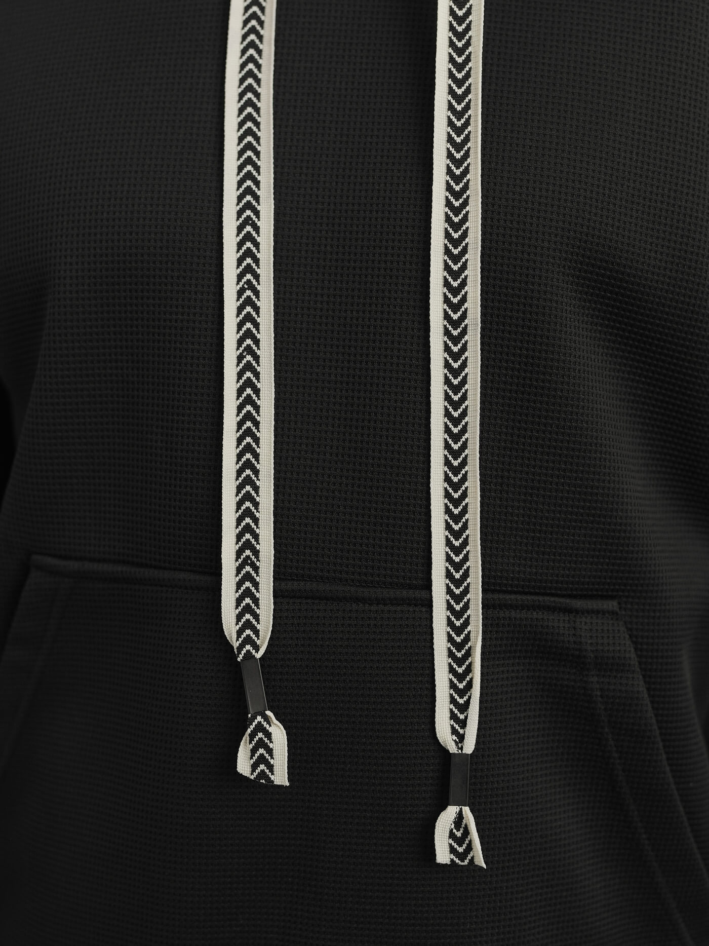 - Hanorac de tip pulover, cu glugă și manșete elastice la mâneci și tiv