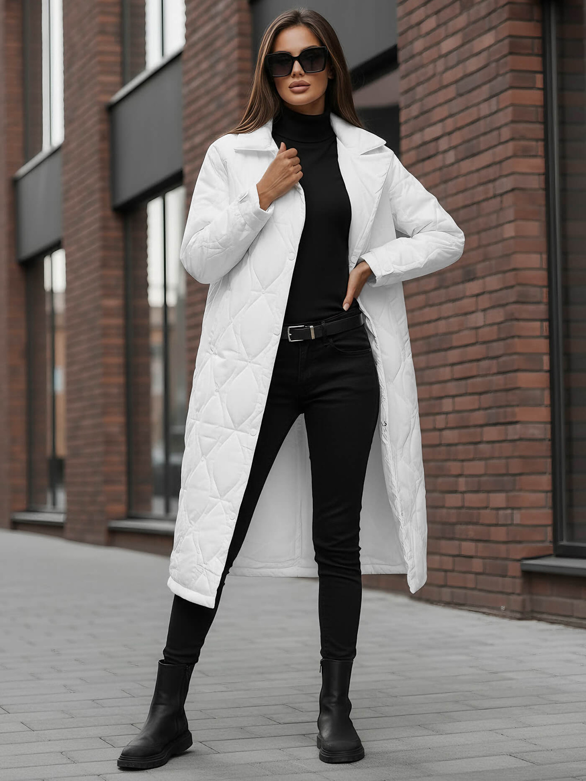 - Palton de iarnă pentru femei, cu design matlasat modern, într-o nuanță clasică de alb