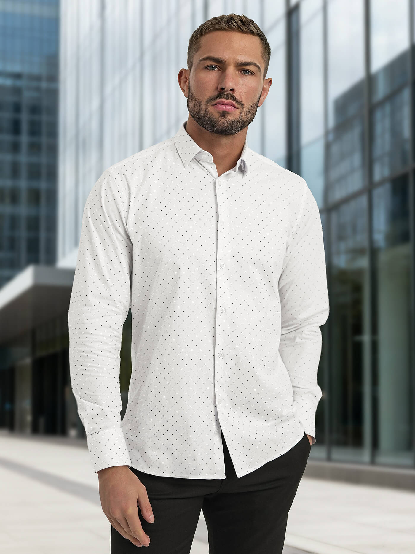 - Cămașă elegantă pentru bărbați, în culoare albă clasică – perfectă pentru ocazii formale și casual