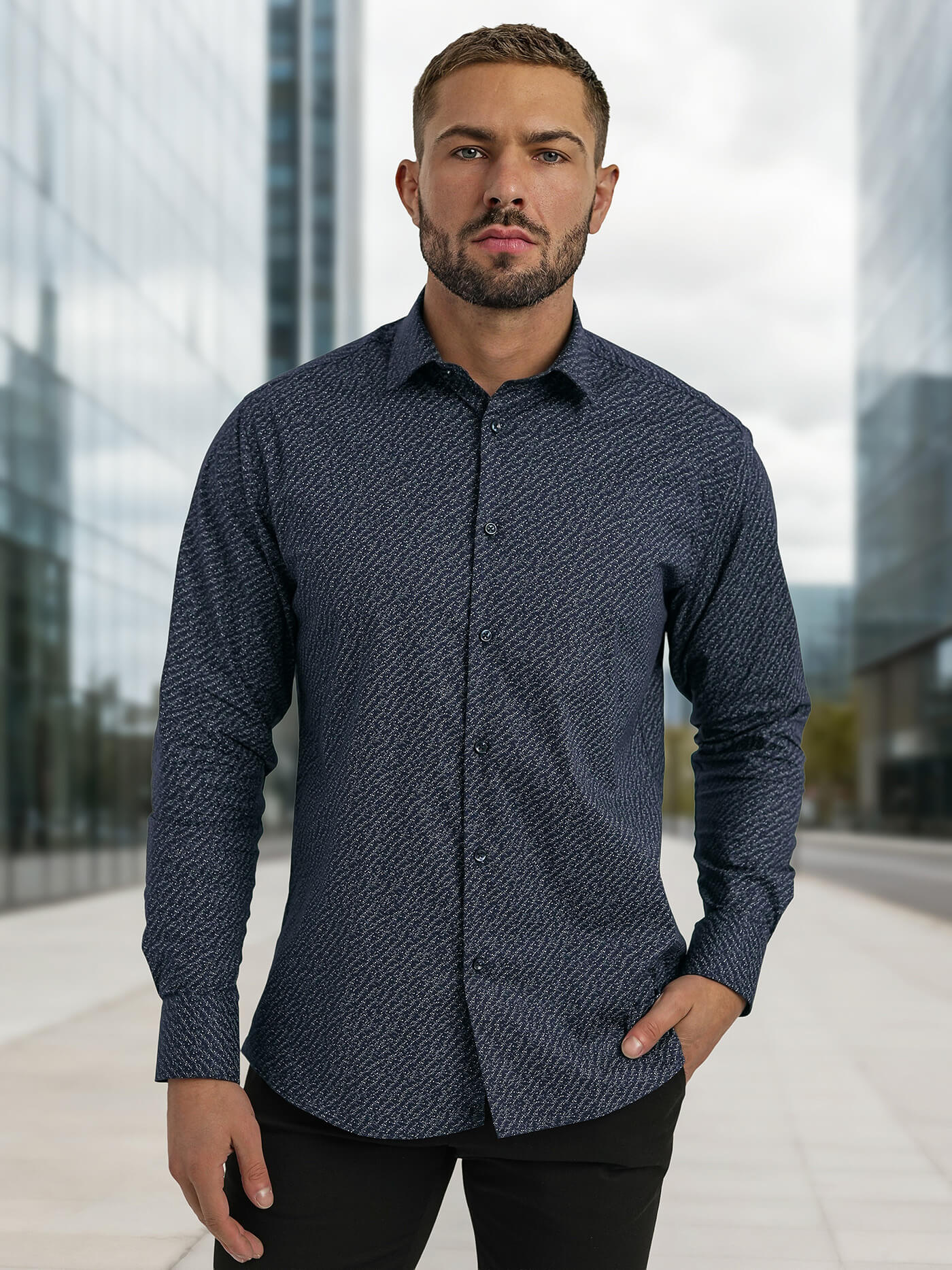 - Croială Slim-Fit, ce urmează linia corpului pentru un aspect modern și elegant