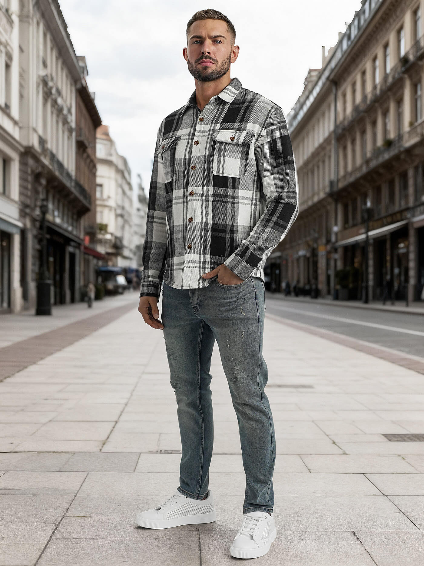 - Cămașă flanel bărbătească, cu model clasic în carouri