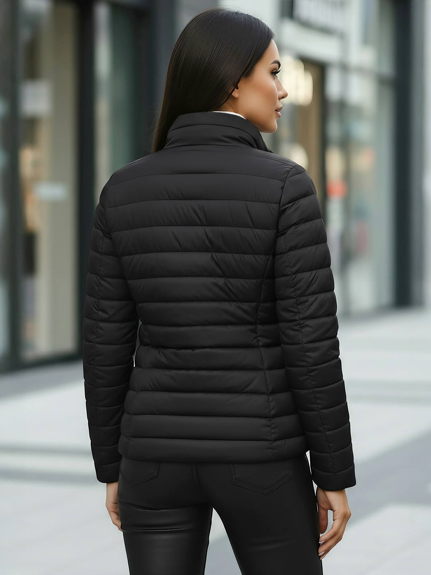 Geaca de damă din cea mai nouă colecție nu numai că va satisface nevoia ta de confort, dar va exprima și stilul tău unic. Cu capitonajul modern și buzunarele practice pe laturi, această geacă combină eleganța cu funcționalitatea. Mânecile finisate cu mansete îi conferă un aspect rafinat, iar materialul din 100% poliester garantează confort și durabilitate.