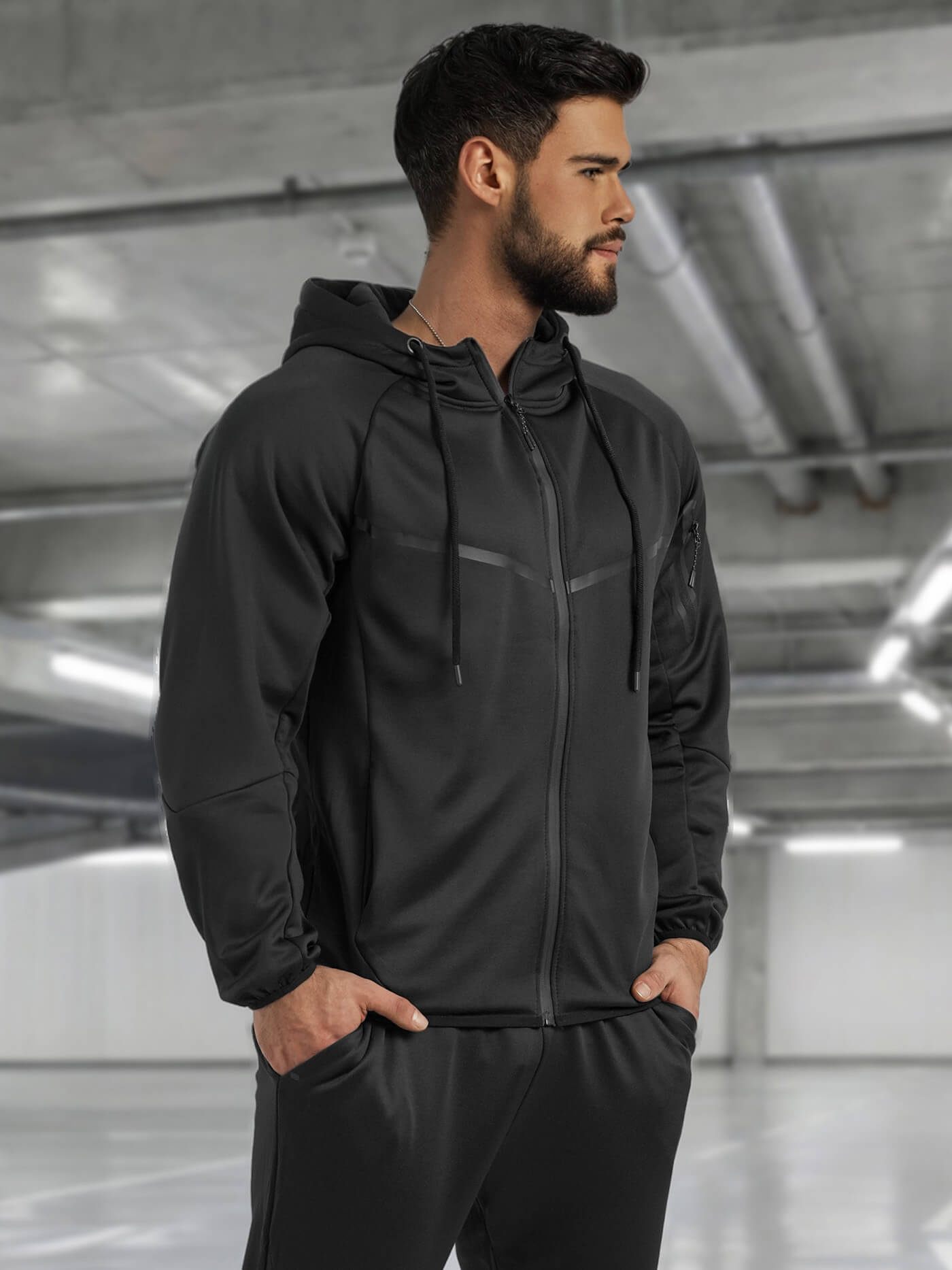 - Set de trening pentru bărbați, realizat din material ușor și rezistent – ideal pentru îmbrăcăminte confortabilă de zi cu zi