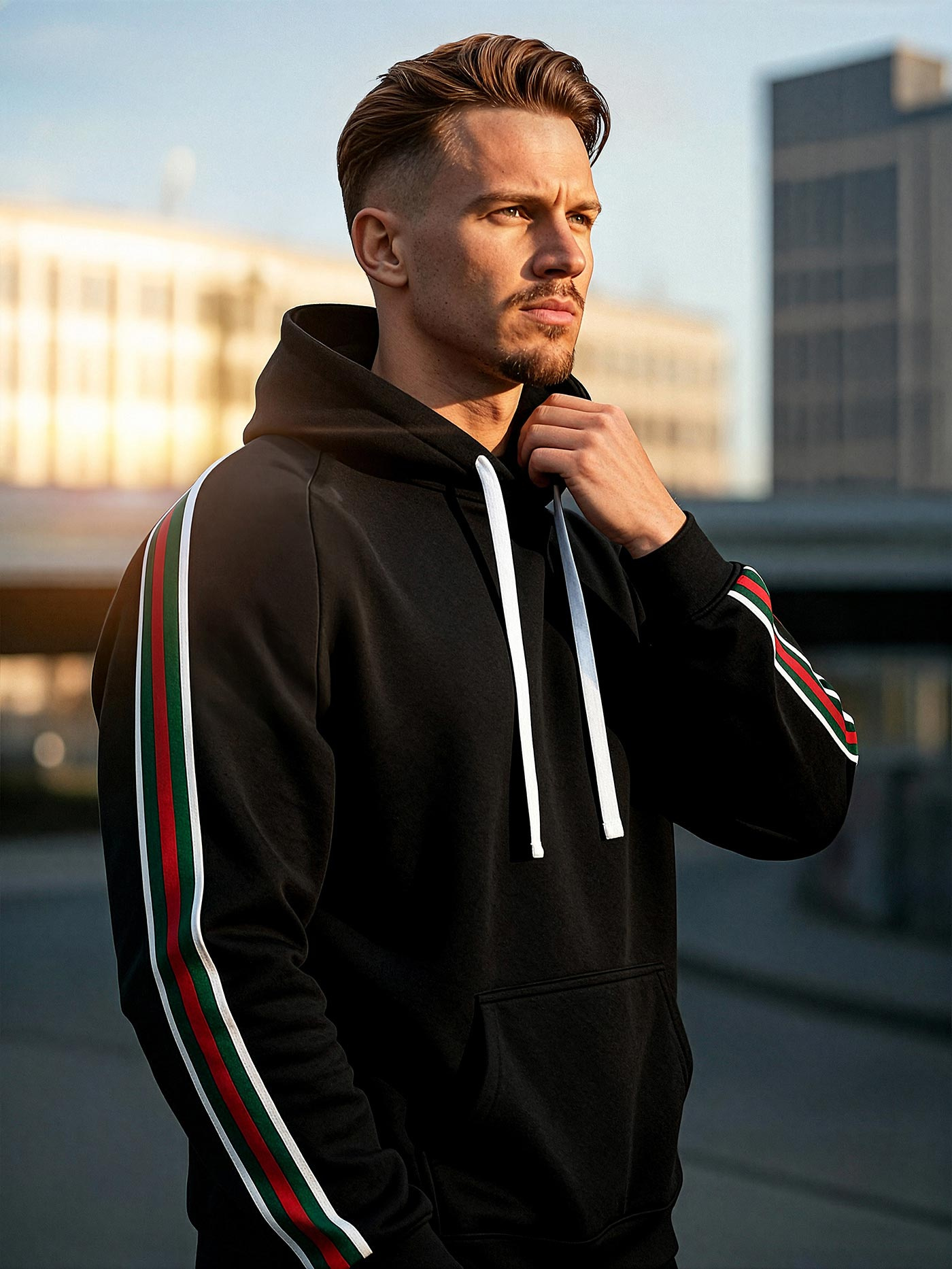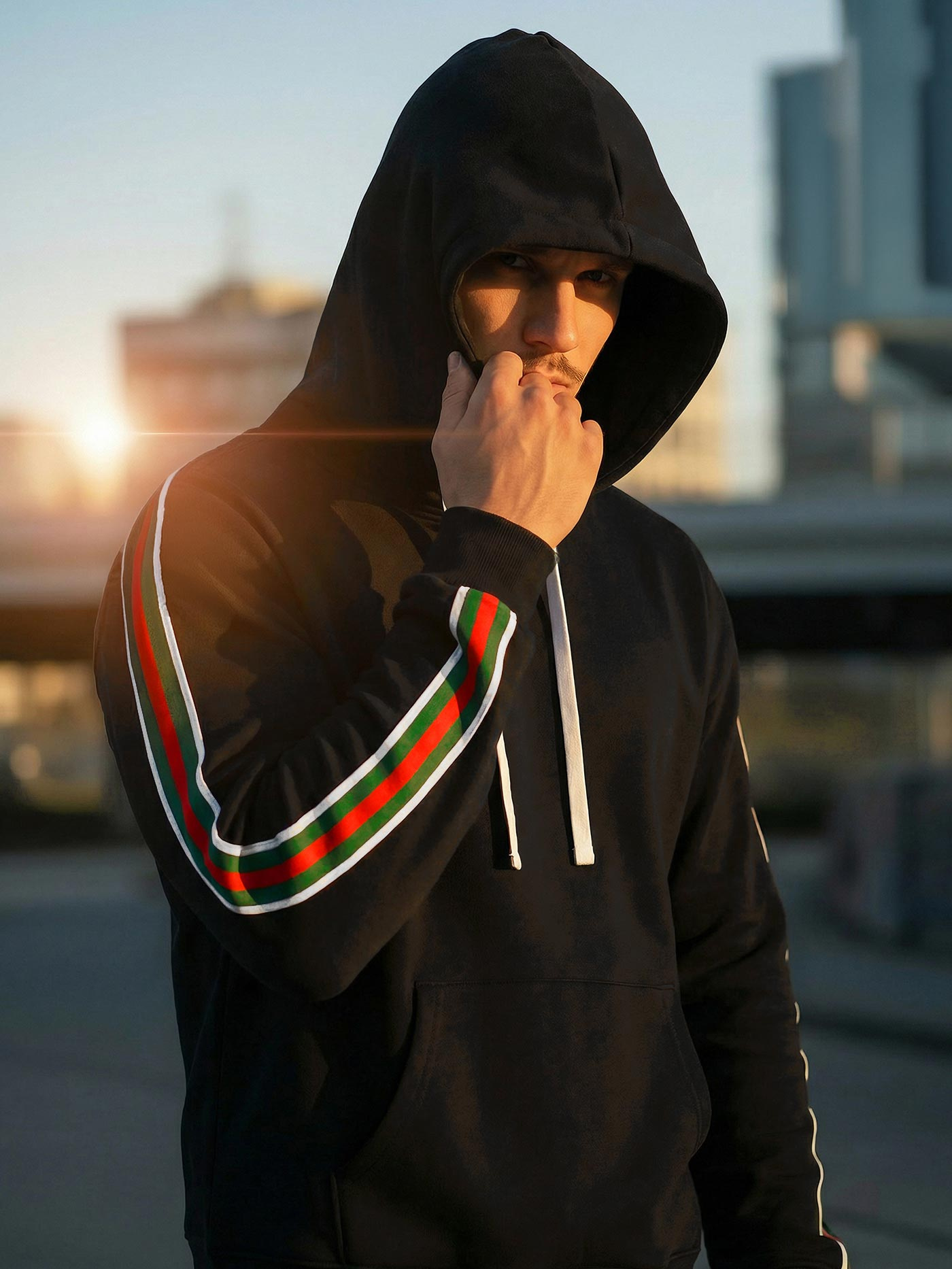 - Acest hanorac clasic, dintr-un amestec de bumbac, este prevăzut cu glugă și manșete elastice pentru o potrivire perfectă