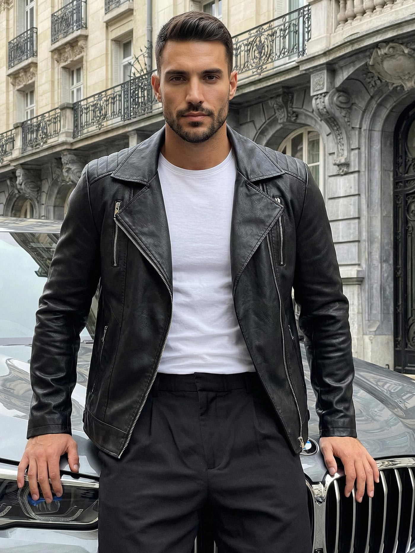 Jacheta ramoneska pentru bărbați ramoneska din cea mai recentă colecție de la OZONEE este alegerea perfectă pentru bărbații care apreciază stilul și confortul. Confecționată din piele ecologică și cu închidere cu fermoar, această jachetă neagră este o piesă vestimentară extrem de la modă și versatilă.