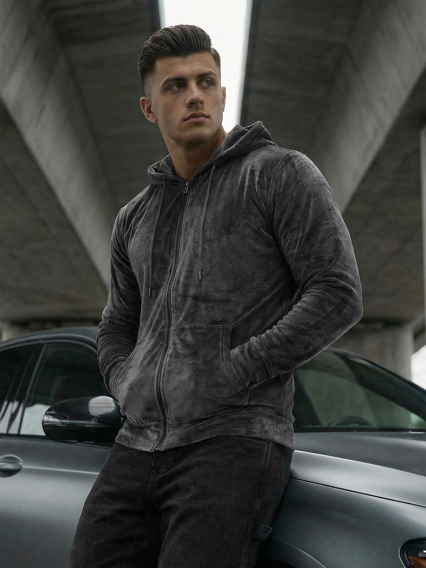 Hanorac cu glugă din catifea grafit pentru bărbați OZONEE JS/8B1168/6Z - perfect pentru orice ocazie